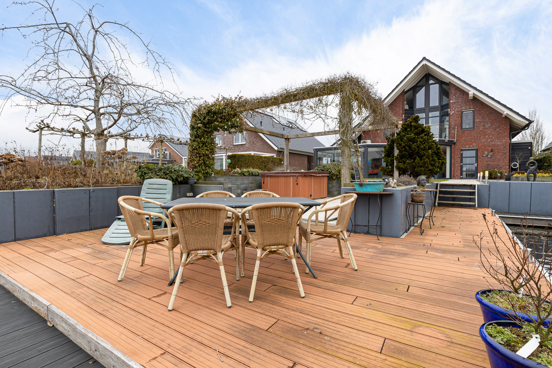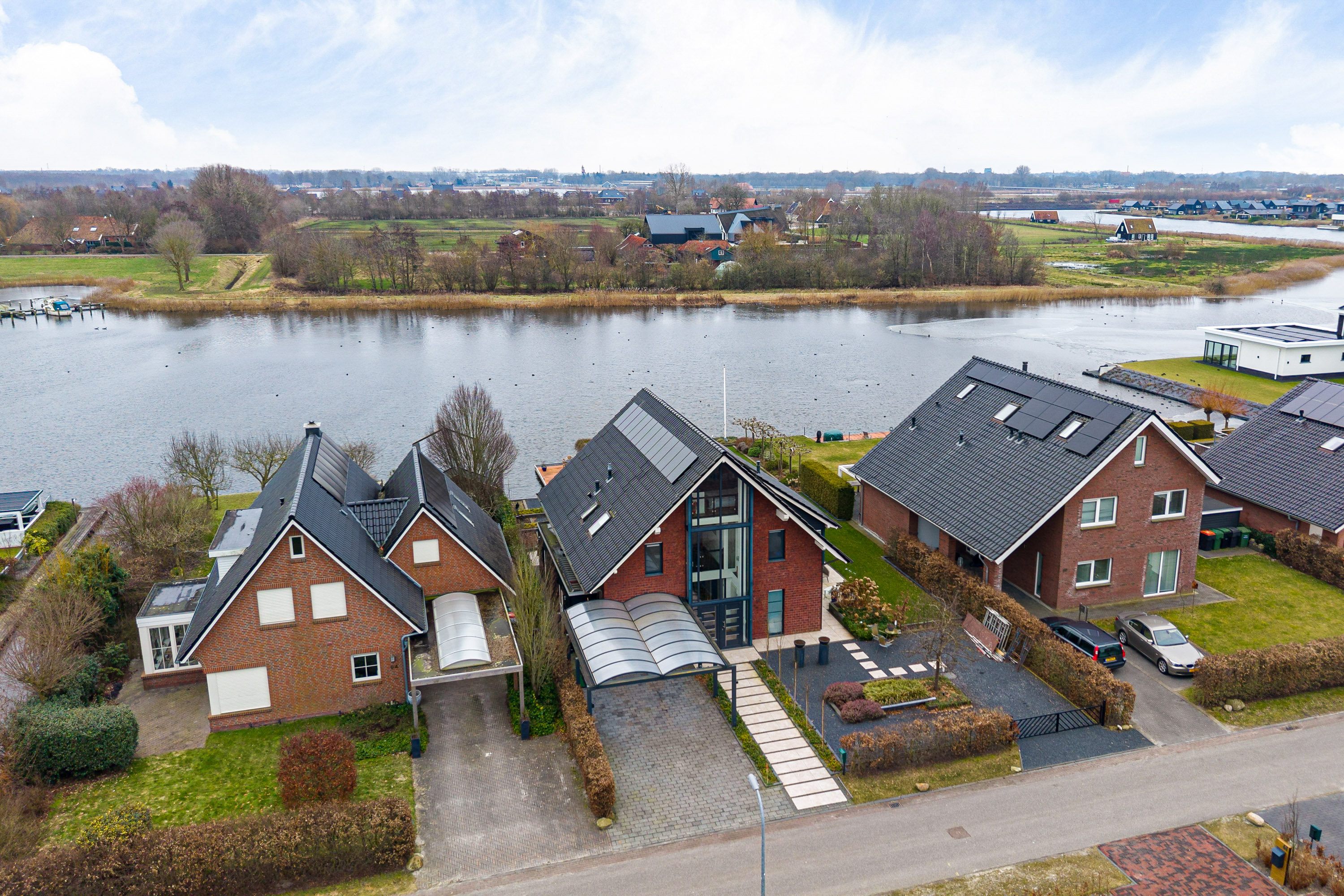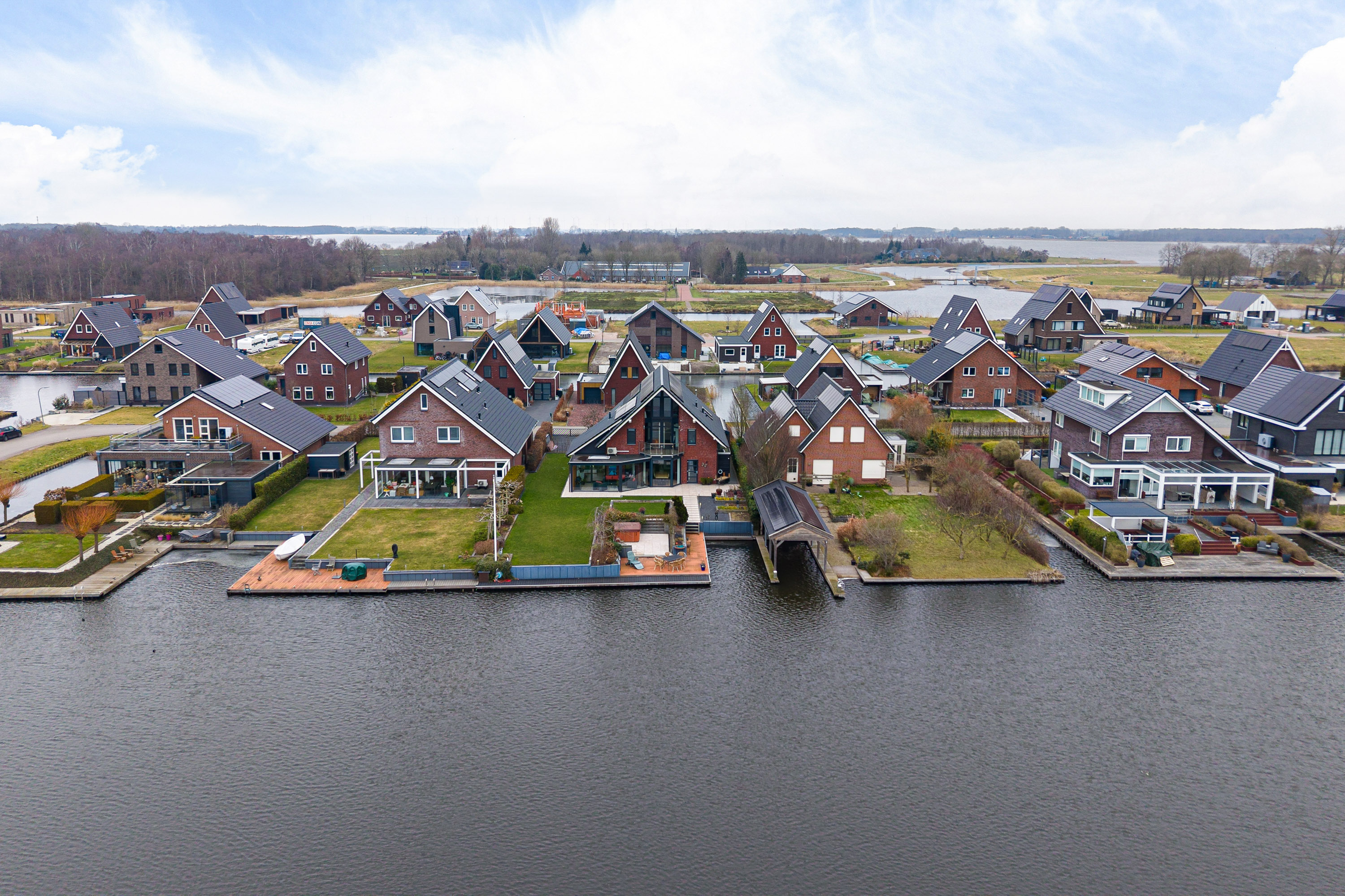 Ondanks deze functionele en esthetische voordelen vinden we de grootste bijzonderheid aan de achterzijde. Niet alleen een achtertuin op het zonnige zuiden. Door de ligging aan het einde van de straat met een vrij uitzicht zonder bebouwing ‘aan de overzijde’. Meer functioneel? Niet alleen beschikt het perceel over een steiger met terras, ook is er een eigen haventje aangelegd voor het aanmeren van uw boot of sloep. Zicht op dit ‘schouwspel’ heeft u ook vanuit de fraaie aangebouwde serre, toegankelijk vanuit de woonkamer.