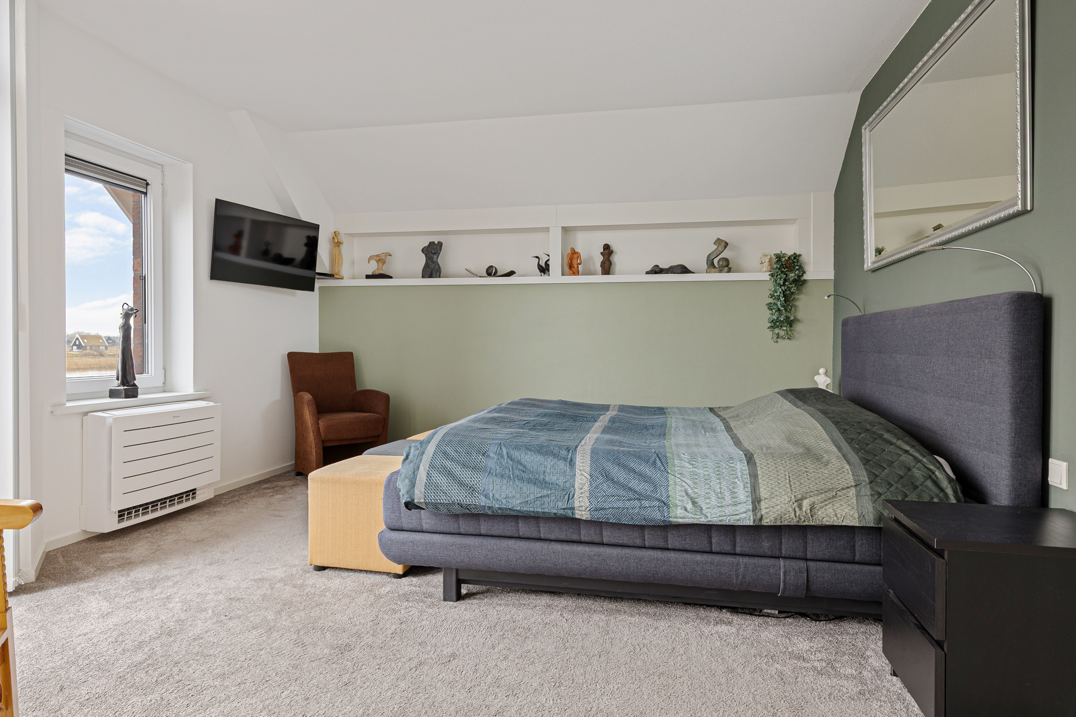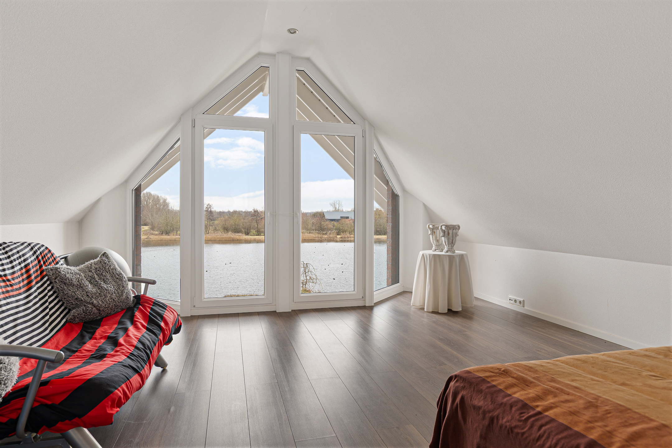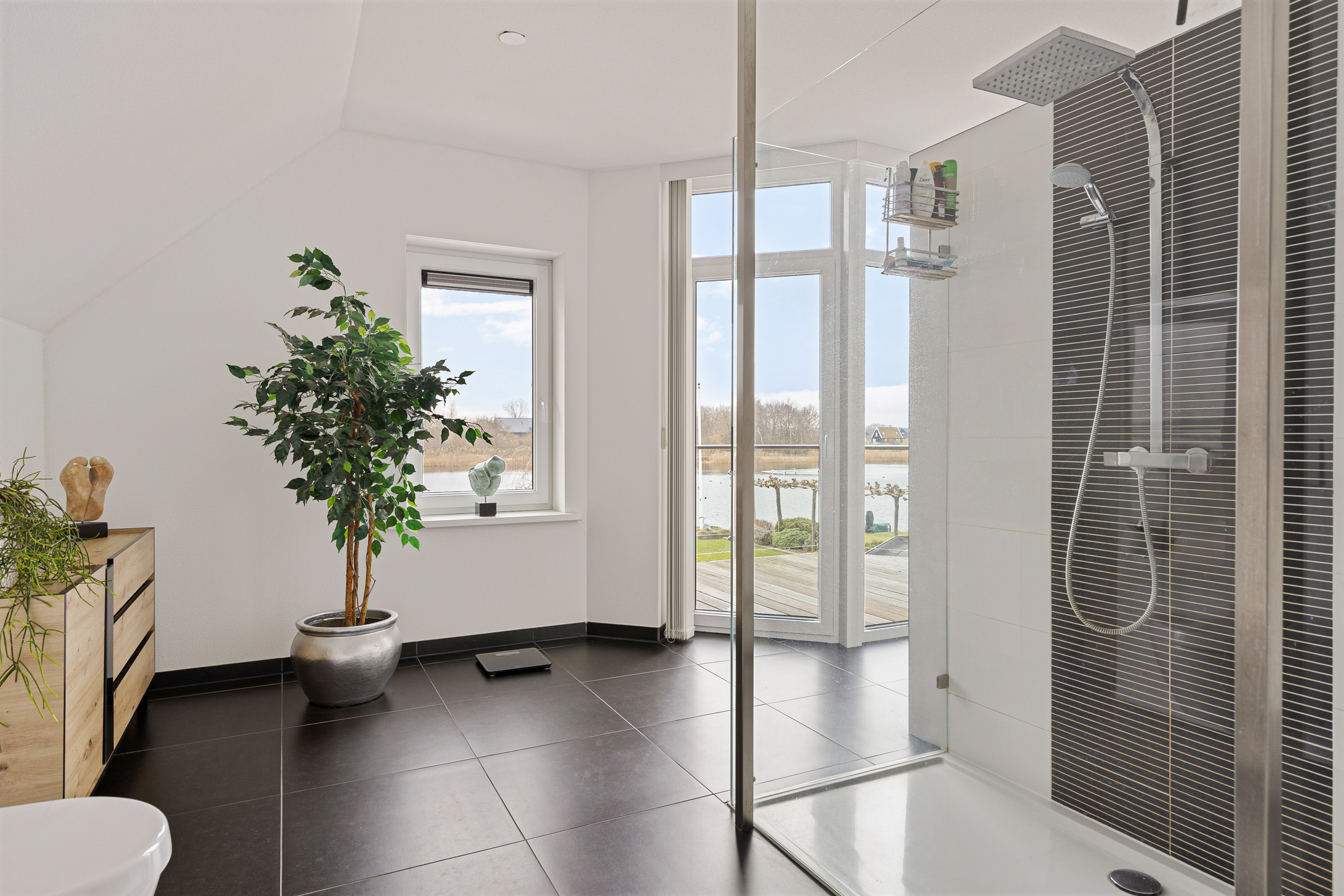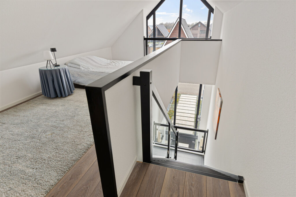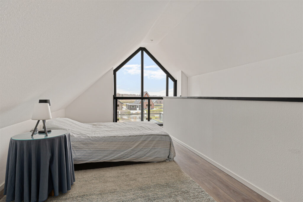 Op de verdieping een royale indeling, beginnend bij de overloop annex vide. Ruim, licht en voorzien van een vaste trap naar de tweede verdieping. Verder een technische ruimte, drie slaapkamers waarvan één met ‘walk-in closet’, balkon en vrij uitzicht. Ook de badkamer geniet van dit uitzicht en is op zijn minst bovengemiddeld te noemen qua maatvoering. In ieder geval kijkt u vanuit uw bad zo over het water, niet zijnde uw badwater… Op de tweede verdieping nog een heerlijke werk- annex speelplek en een vijfde slaapkamer met uitzicht!