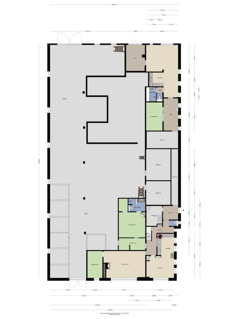Voor de exacte indeling verwijzen we graag naar de opgemaakte plattegronden. Toch zijn er wel een aantal zaken die direct in het oog springen. In de eerste plaats de mogelijkheid - op basis van de indeling - tot dubbele bewoning. Aan de achterzijde van de woonboerderij is namelijk een soort zelfstandig ‘appartement’ gerealiseerd, voorzien van eigen entree en voorzieningen. Los van dit zelfstandig appartement beschikt het woonhuis zelf ook over een royale maatvoering. Voor het grootste deel op de begane grond maar deels ook op de verdieping. Hierdoor is het woonhuis ook nog eens levensloopbestendig te gebruiken indien gewenst. Kortom, een bijzonder woonhuis op een bijzondere locatie met bijzonder - veel - gebruiksmogelijkheden!