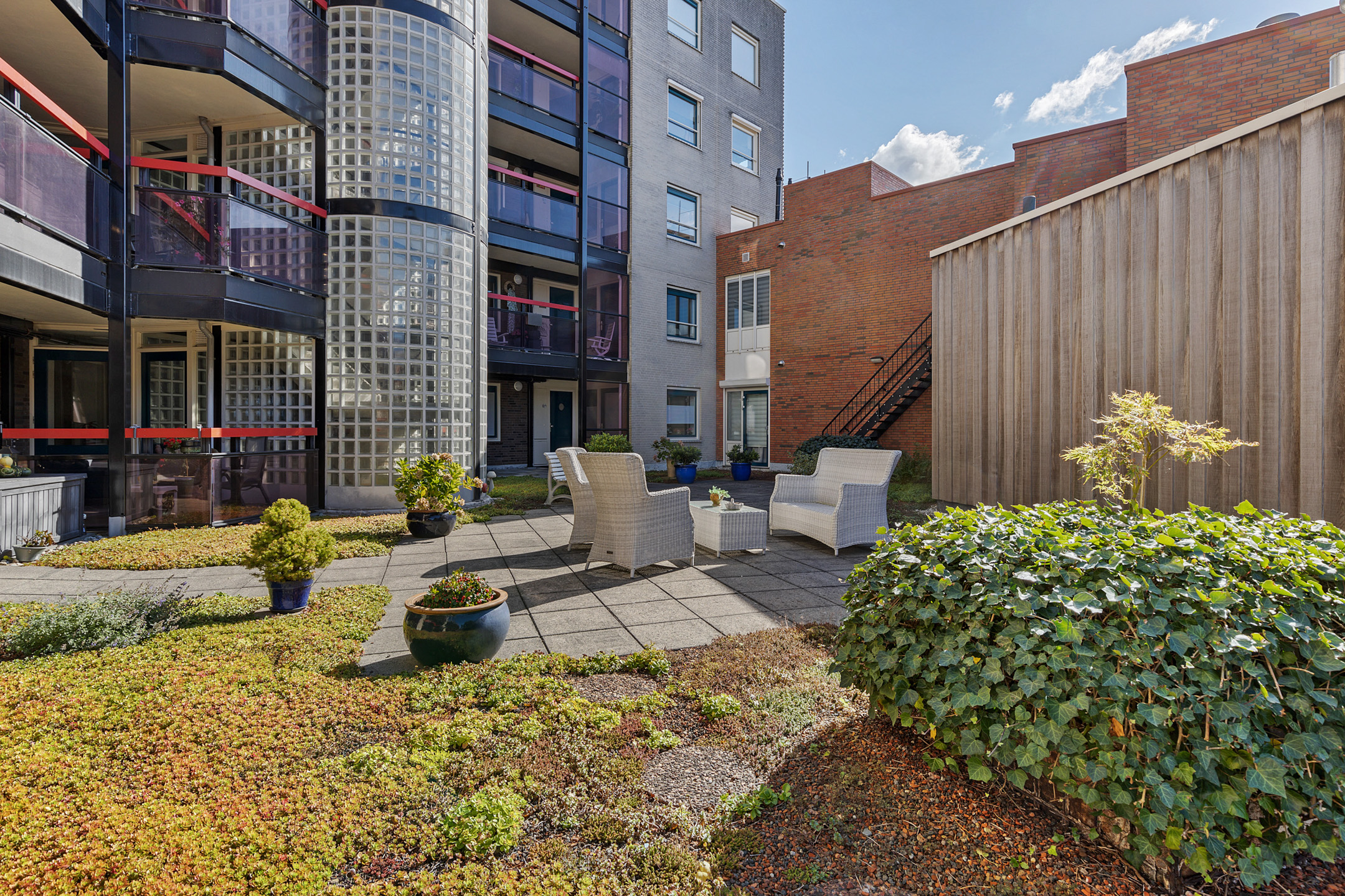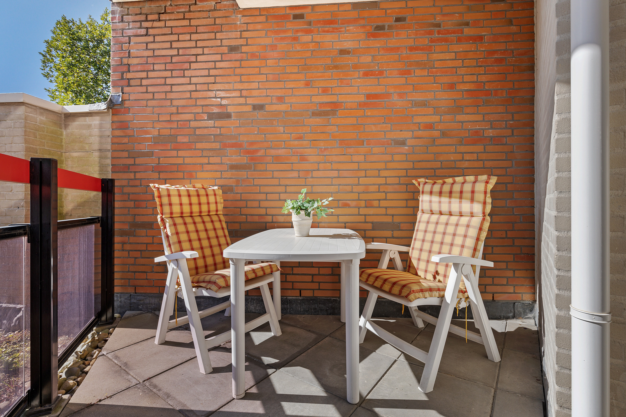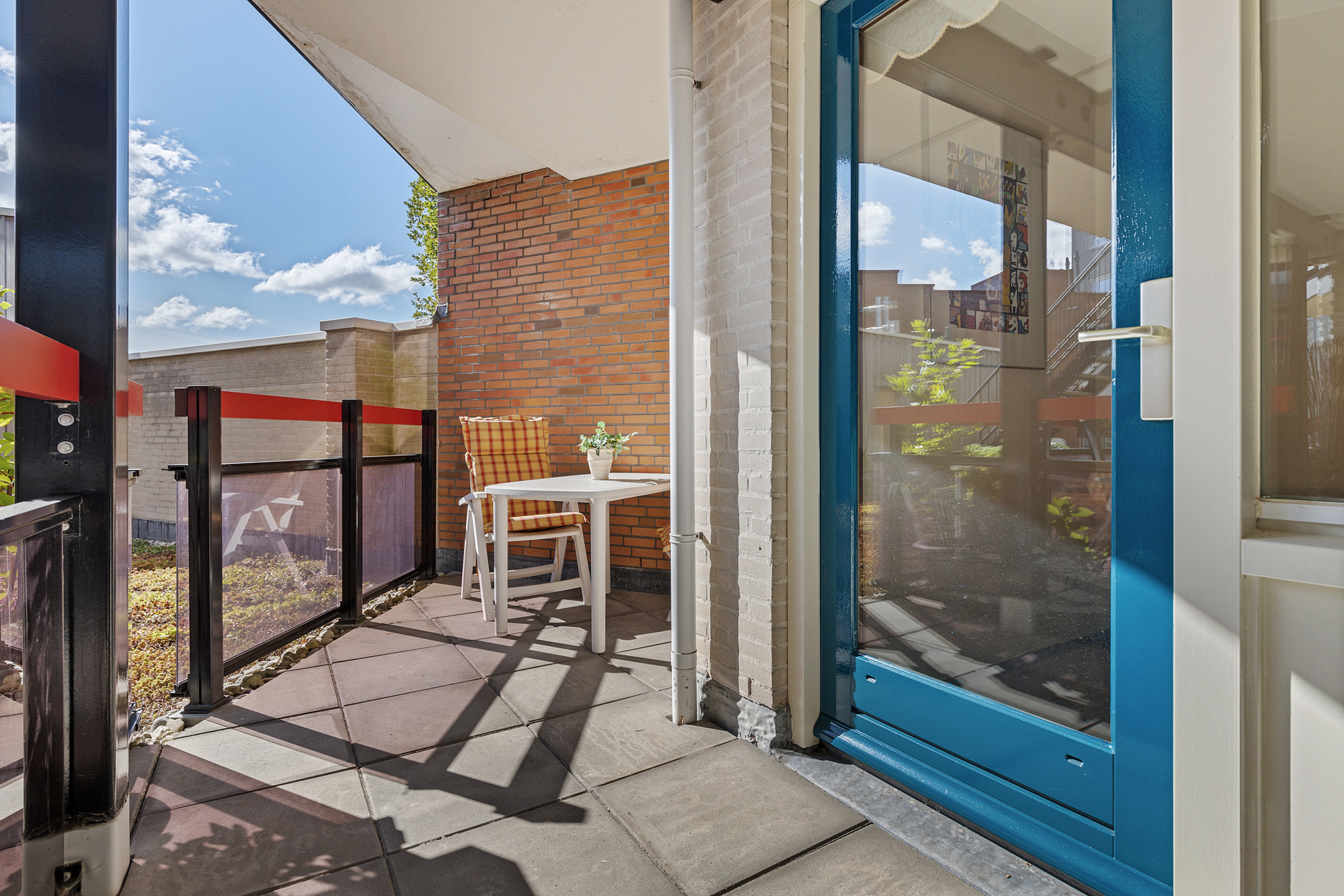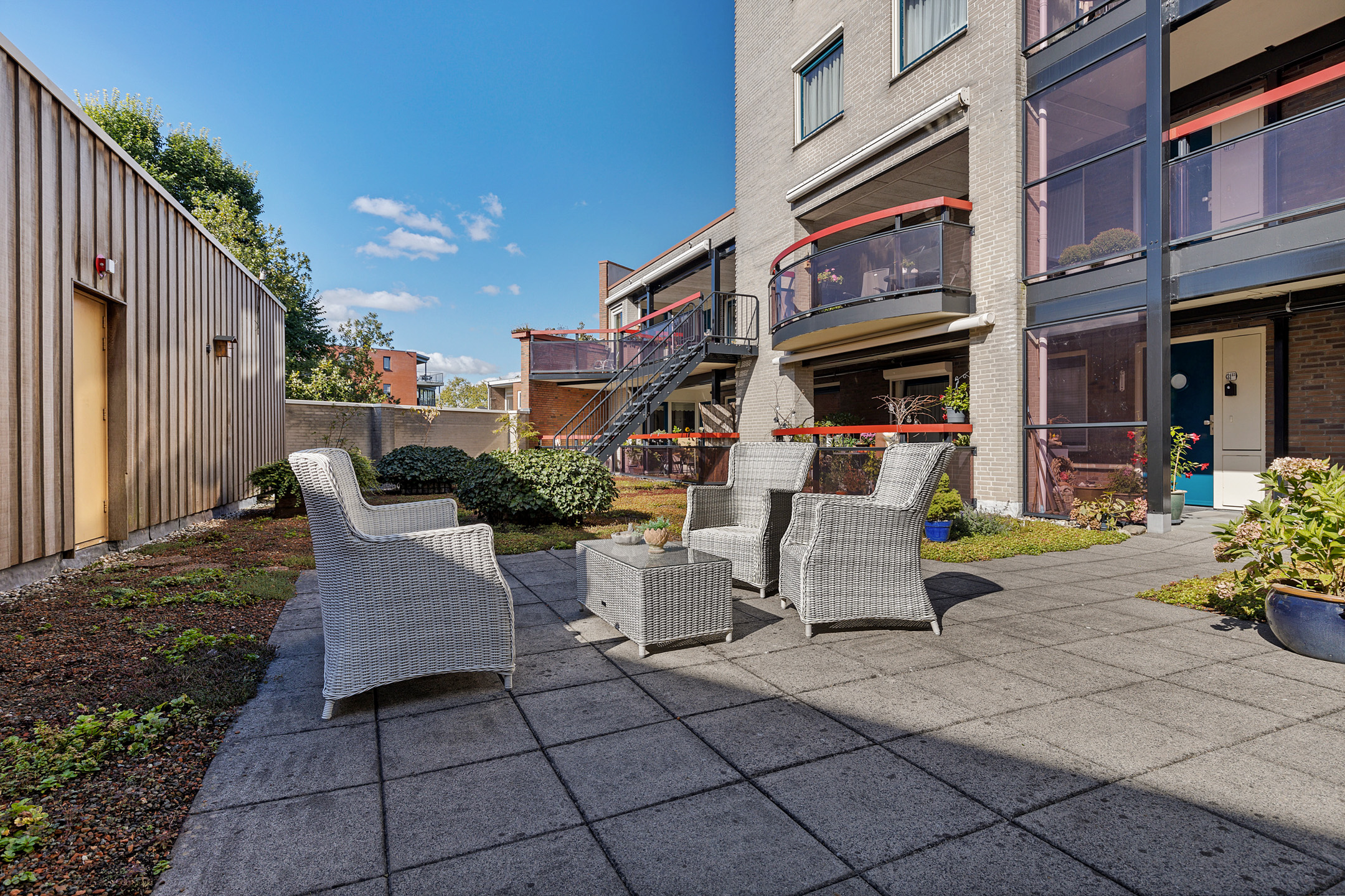 De buitenruimte is beschut en zonnig. Kortom, een zeer comfortabel appartement.