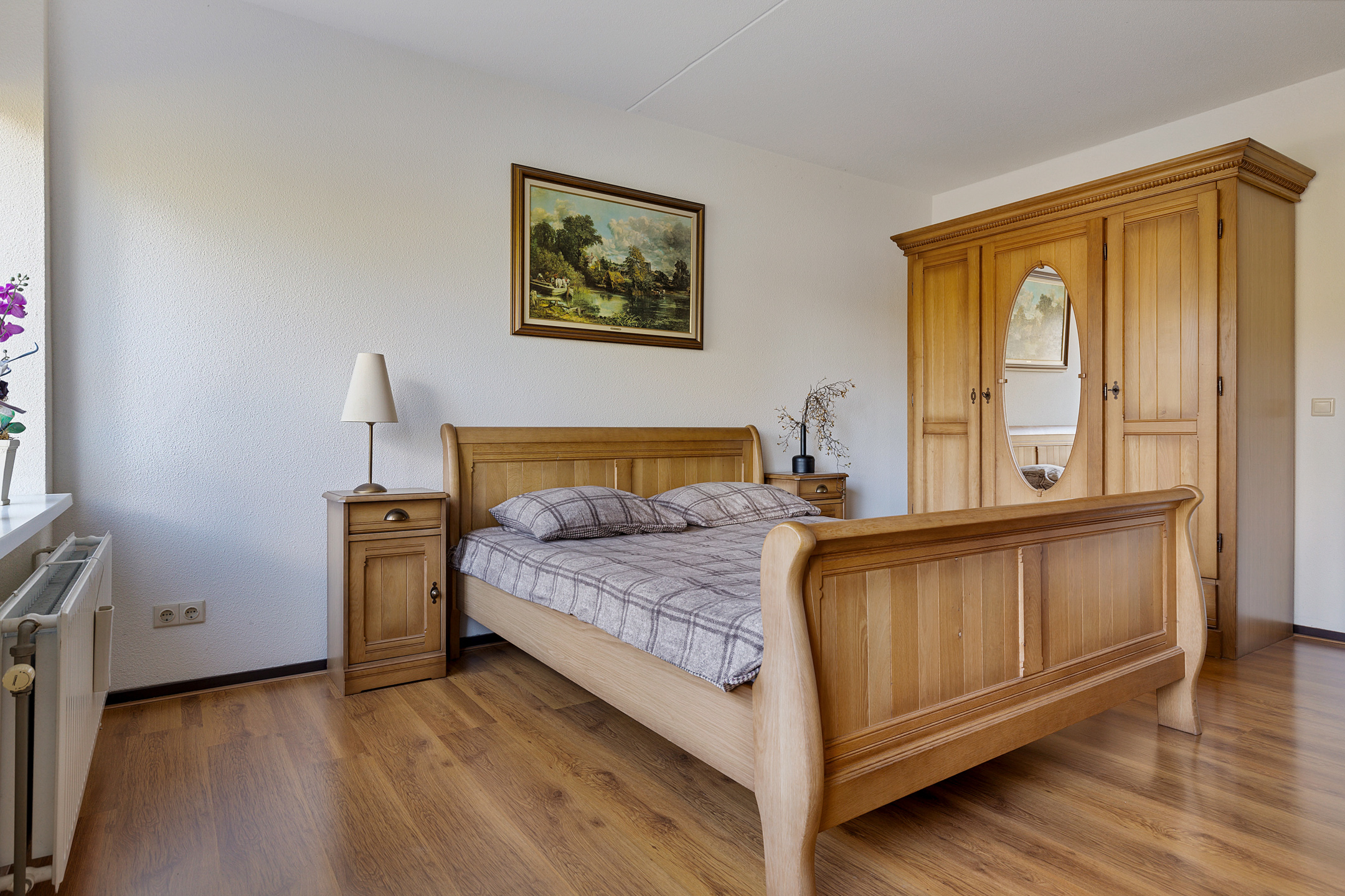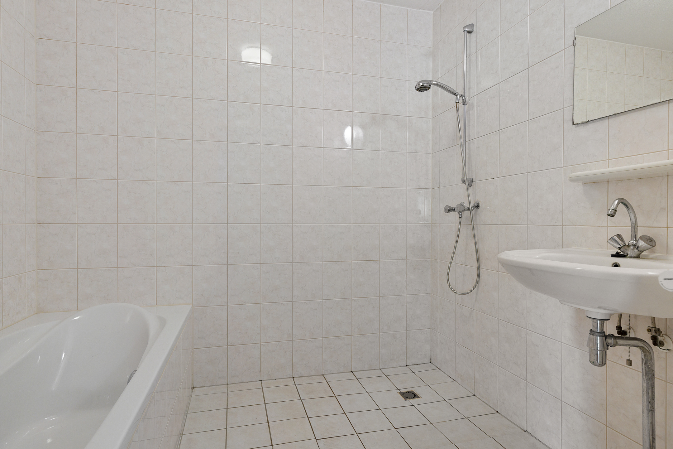 Ruime slaapkamer, badkamer met ligbad, douche en wastafel. Berging met CV opstelling.