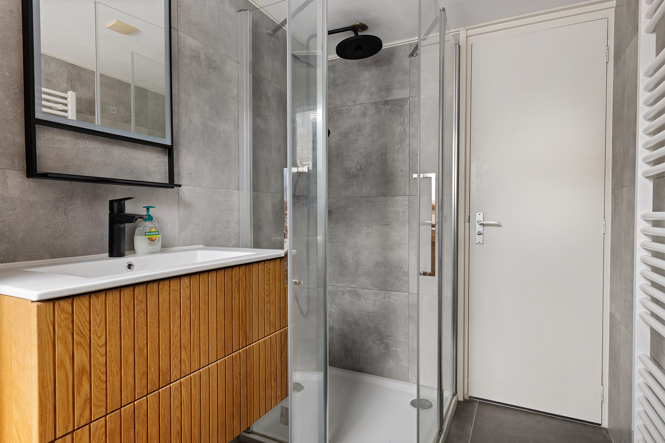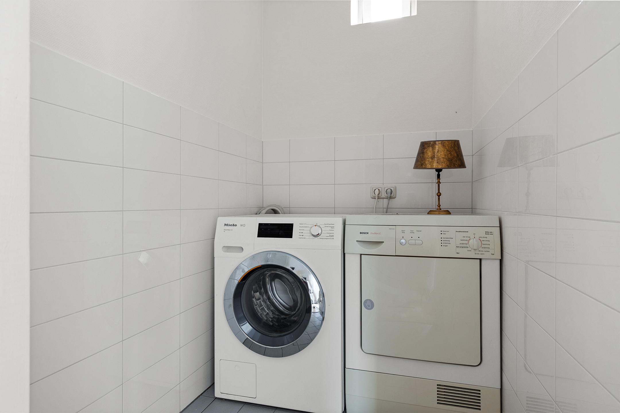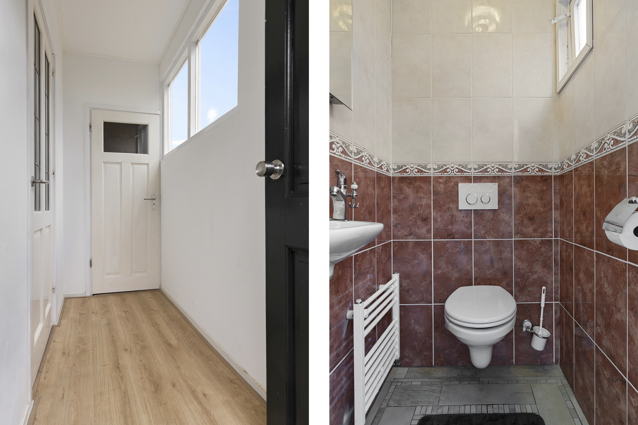 De indeling bestaat op de begane grond uit een straatgerichte, speelse L-vormige woonkamer. Deze heerlijke leefruimte beschikt over een keurige laminaatvloer, tuindeuren en een open keuken met op haar beurt een moderne inrichting voorzien van inbouwapparatuur. In het achterhuis zijn de achterhal met het betegeld toilet en dito bijkeuken gerealiseerd. Vanuit de ontvangsthal leidt de trapopgang naar de eerste verdieping. Hier biedt de overloop toegang tot de beide - royale - slaapkamers voorzien van laminaatvloeren. Het geheel wordt gecompleteerd door de modern betegelde badkamer, compleet met douchecabine, wastafelmeubel en tweede toilet.